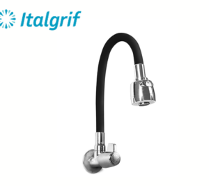 LLAVE PARA LAVADERO CON PICO FLEXIBLE GRIS A LA PARED – ITALGRIF