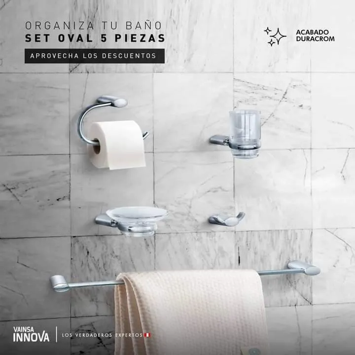 - Kit de 5 piezas metálicas con acabado cromado