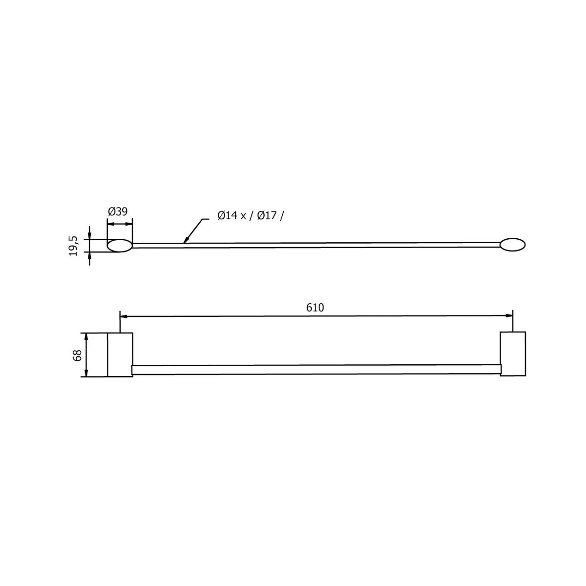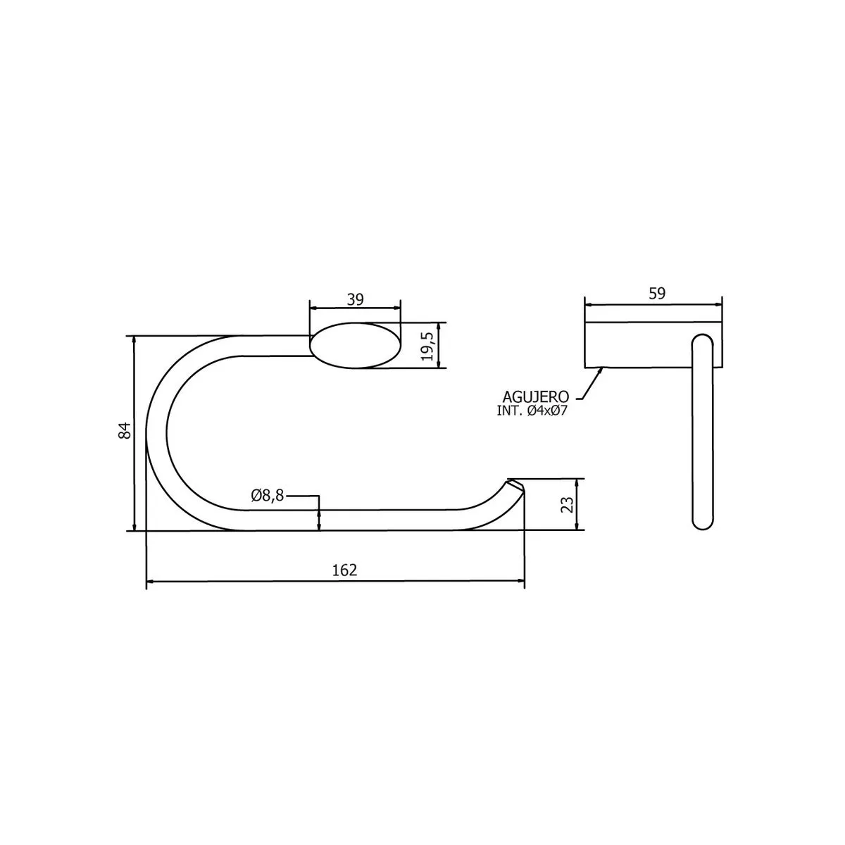 inoxidable. Ambos con acabado cromado - Toallero con soporte metálico y anillo de bronce.