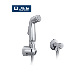 Ducha bidet modelo nueva asia con soporte a la pared y tubo metálico de 1.20 mt duracrom y llave angular con filtro