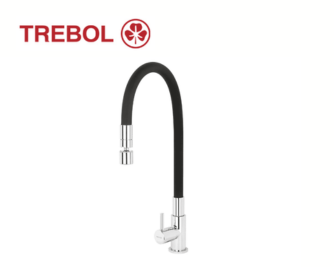 Acabado cromado brillante en el cuerpo y cuellos flexible con recubrimiento en silicona negra suave al tacto, de alta resistencia.