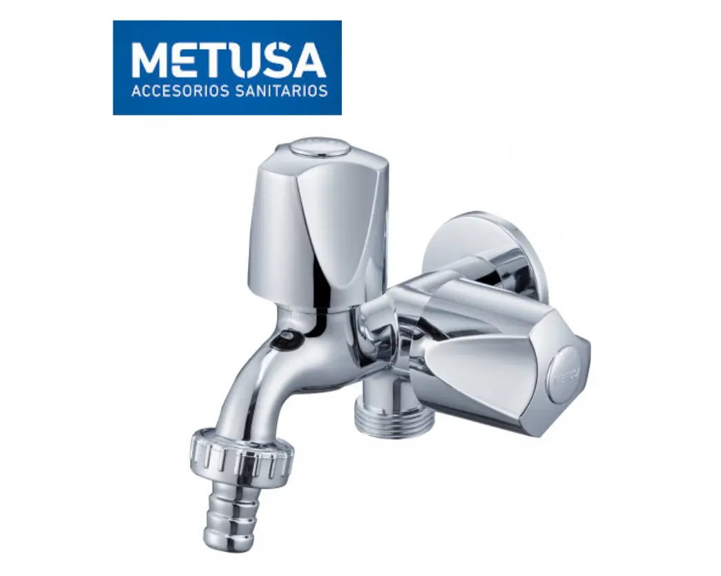 - Con perilla independiente y salida de 3/4″ para manguera de lavadora.