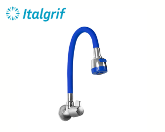 LLAVE PARA LAVADERO CON PICO FLEXIBLE AZUL A LA PARED – ITALGRIF