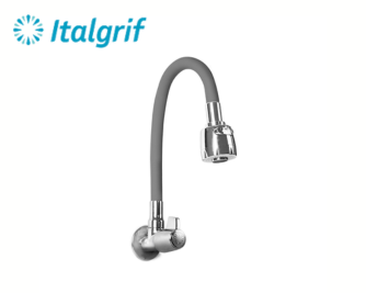 LLAVE PARA LAVADERO CON PICO FLEXIBLE GRIS A LA PARED – ITALGRIF