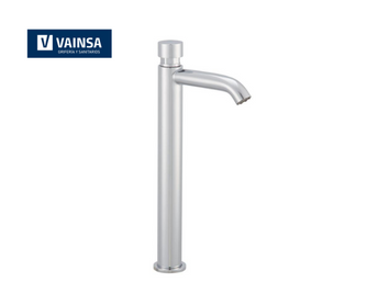 Llave de lavatorio temporizada alta al mueble pico minimalista con aereador antivandálico, línea especializada, duracrom.