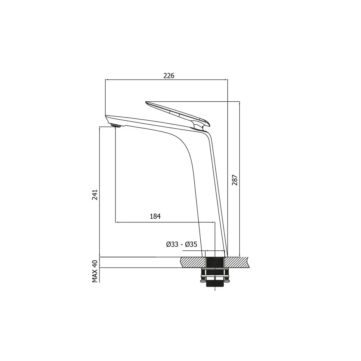 MEZCLADORA MONOCOMANDO LAVATORIO ALTA BLACK COSMOPOLITAN VAINSA