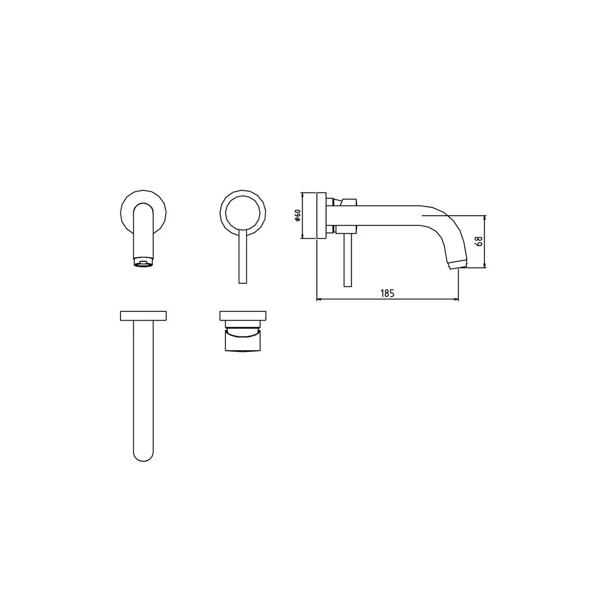 Mezcladora de lavatorio monocomando a la pared, colección lever duracrom
