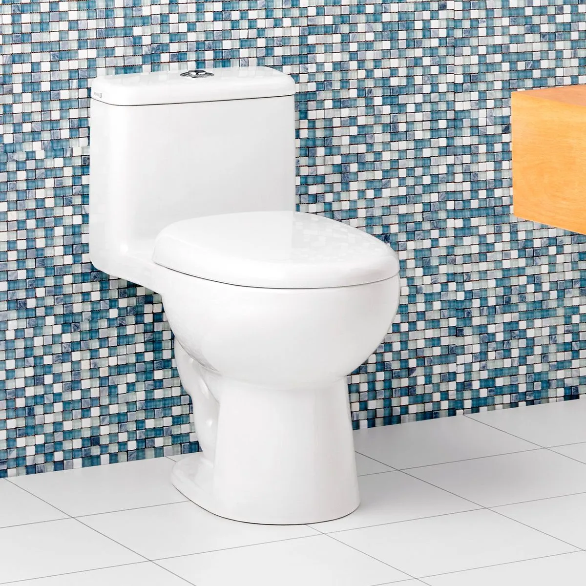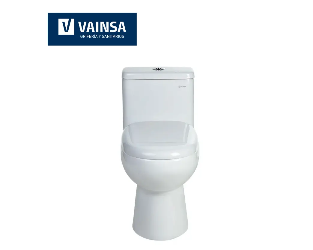 Inodoro one piece marca vainsa, línea bali, con sistema dual y asiento disponible en color blanco