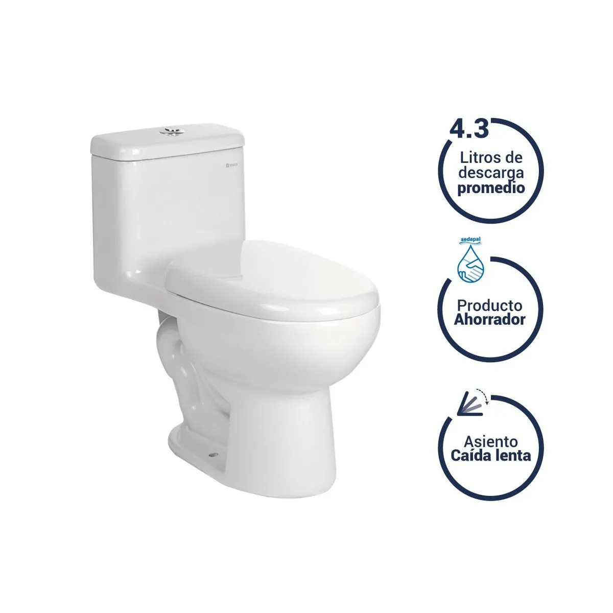 - Inodoro de bajo consumo de agua 4.3 LPF.