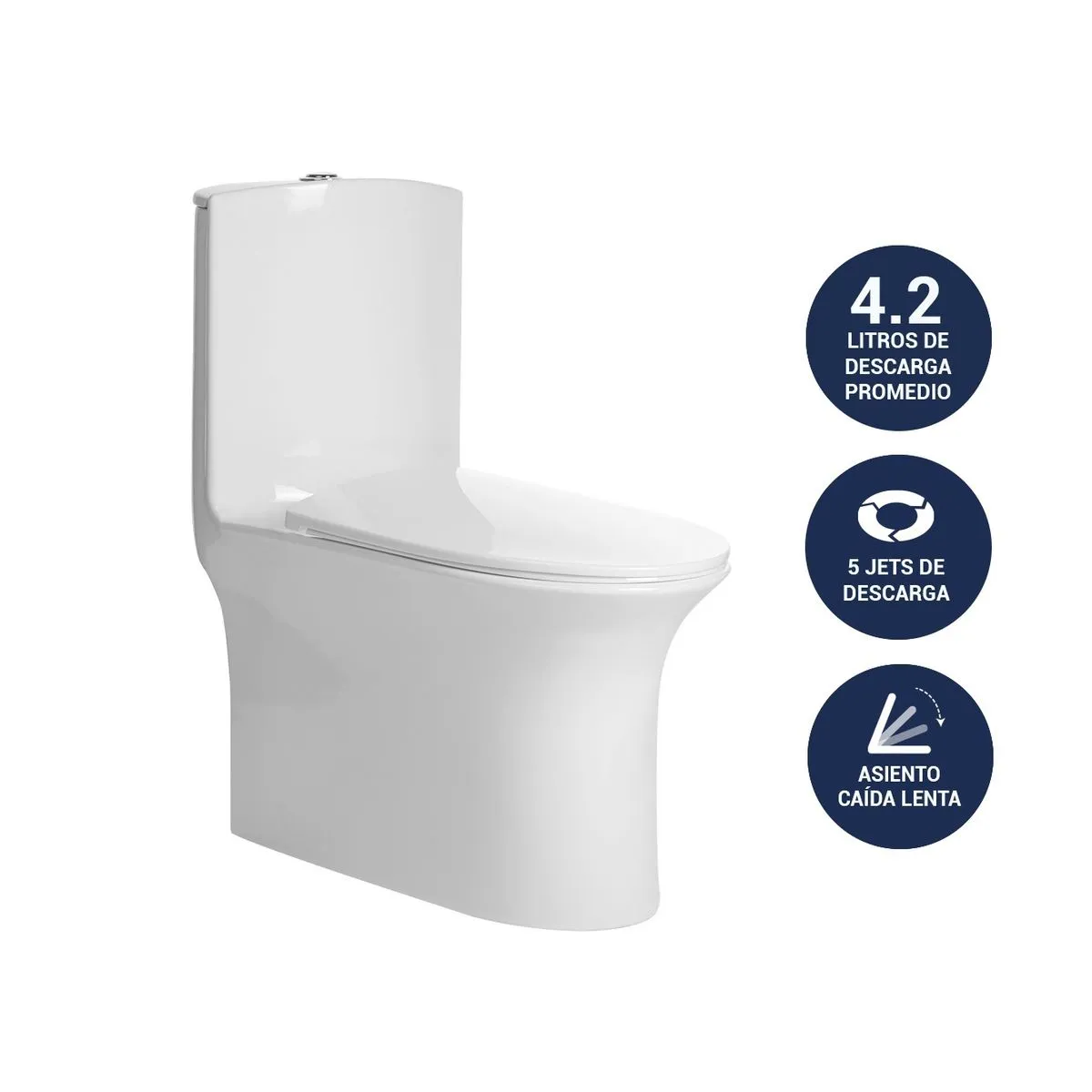 » Válvula R&T de 2″ de descarga potente y flush silencioso. » Cero filtraciones. » Sifón esmaltado para el fácil tránsito de desechos. » Asiento de “caída lenta” que evita los golpes y daños. » Sistema de descarga dual para líquidos 3,9 litros y sólidos 4,8 litros. |
