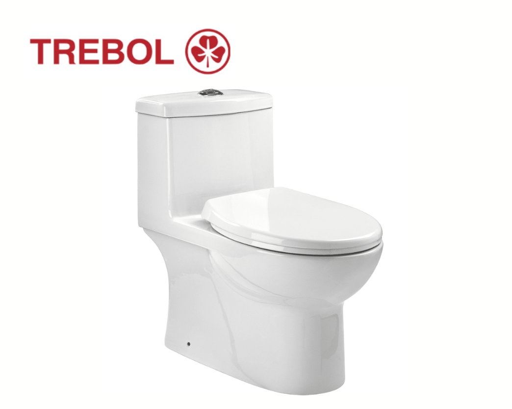 Sanitario de alta eficiencia con sistema de doble pulsador 4.8L y 3.0L, diseño moderno con líneas continuas y estilizadas.