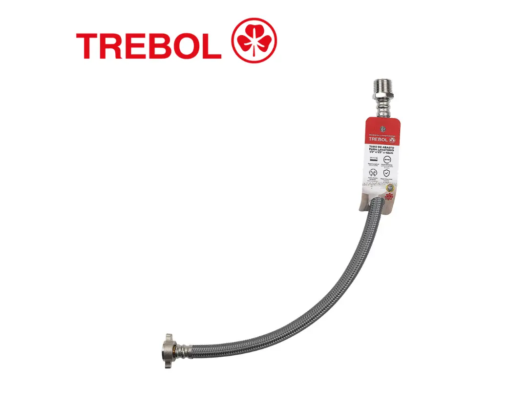 TUBO DE ABASTO LAVATORIO ACERO INOXIDABLE 1/2”X1/2”X45CM - TREBOL