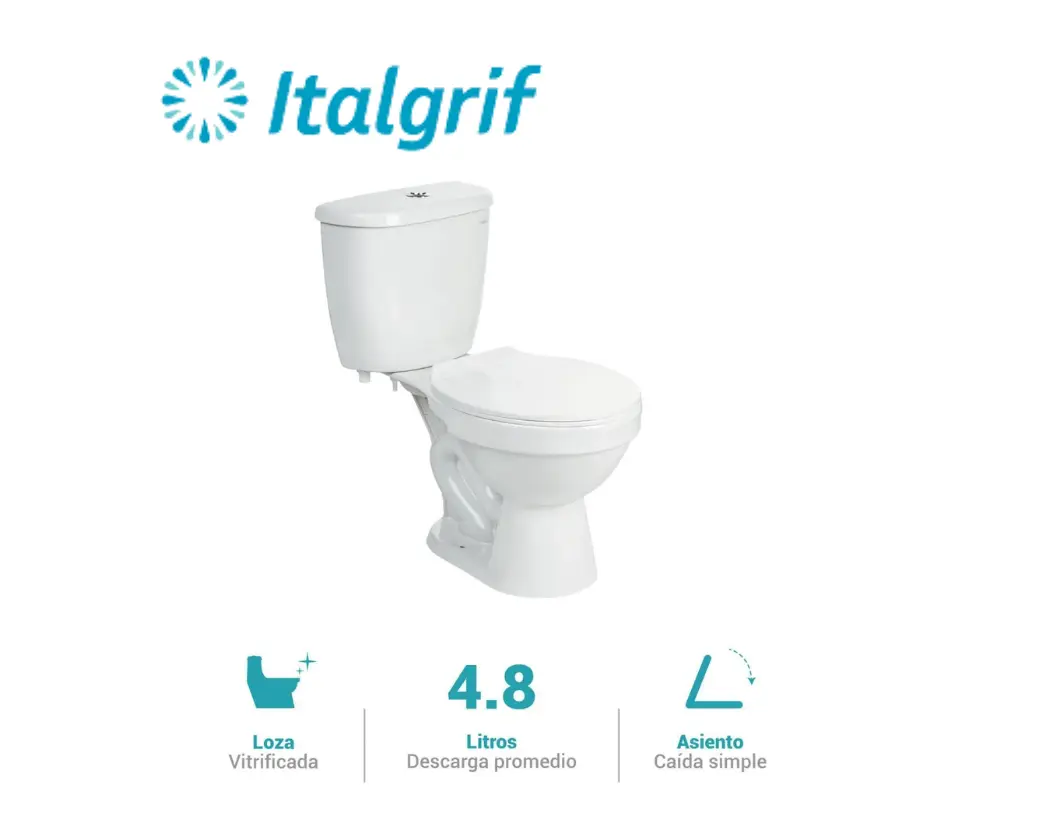 Taza redonda de aro abierto. Inodoro de bajo consumo de agua. Garantía de por vida para la loza. |